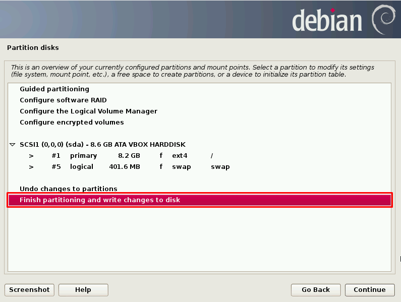 pilih drive yang akan di instal Debian 7 Wheezy